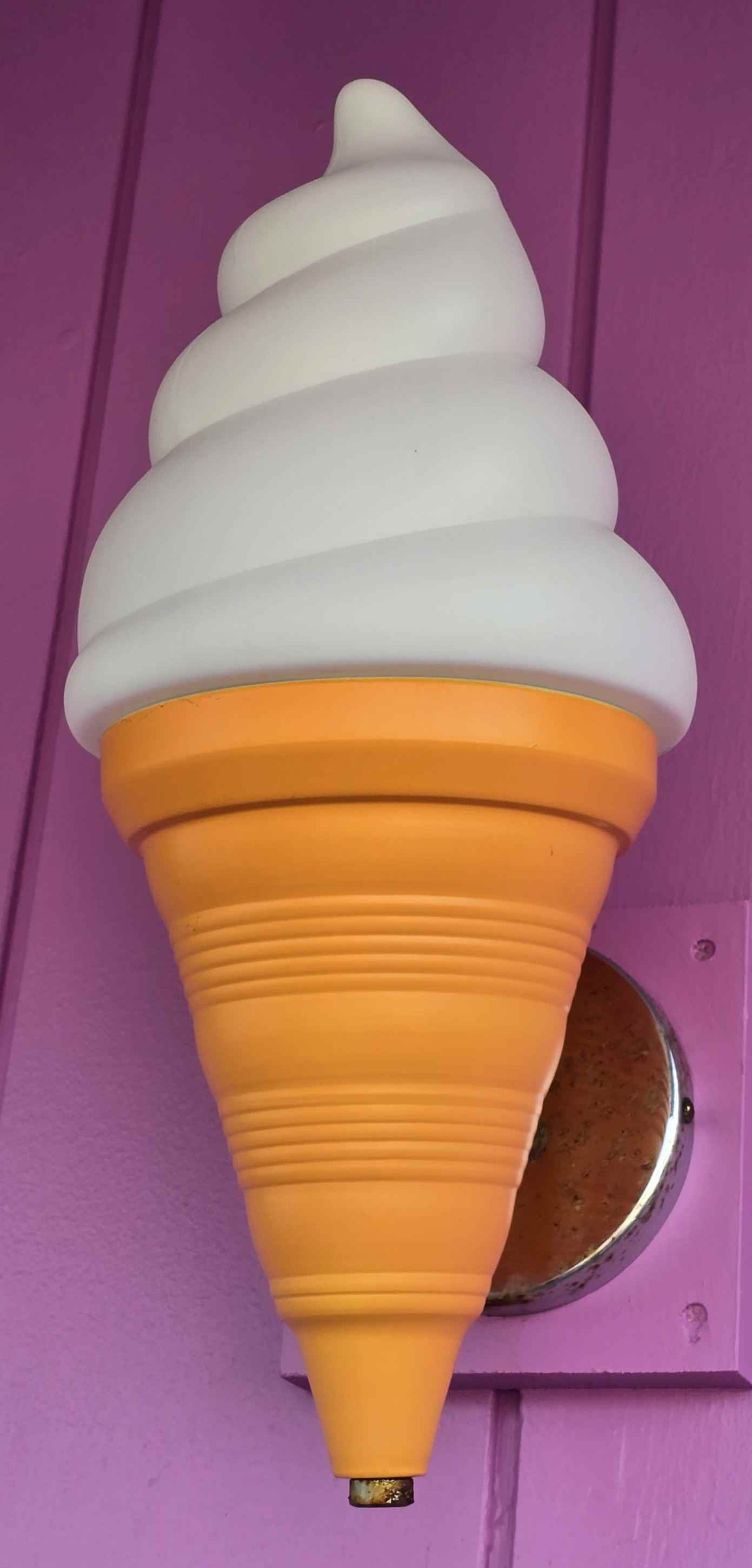 And yes, the sign is a combination of an ice cream cone and a slice of pizza with cheese dripping off - which definitely looks like an ice cream cone first (especially from down the street) and then "wait a second..." once you realize that it's a pizza place. (Of course, then you stare at it too long and the pepperoni pieces start to look like two eyes and an open mouth, so maybe don't do that, just go in and get some ice cream!)